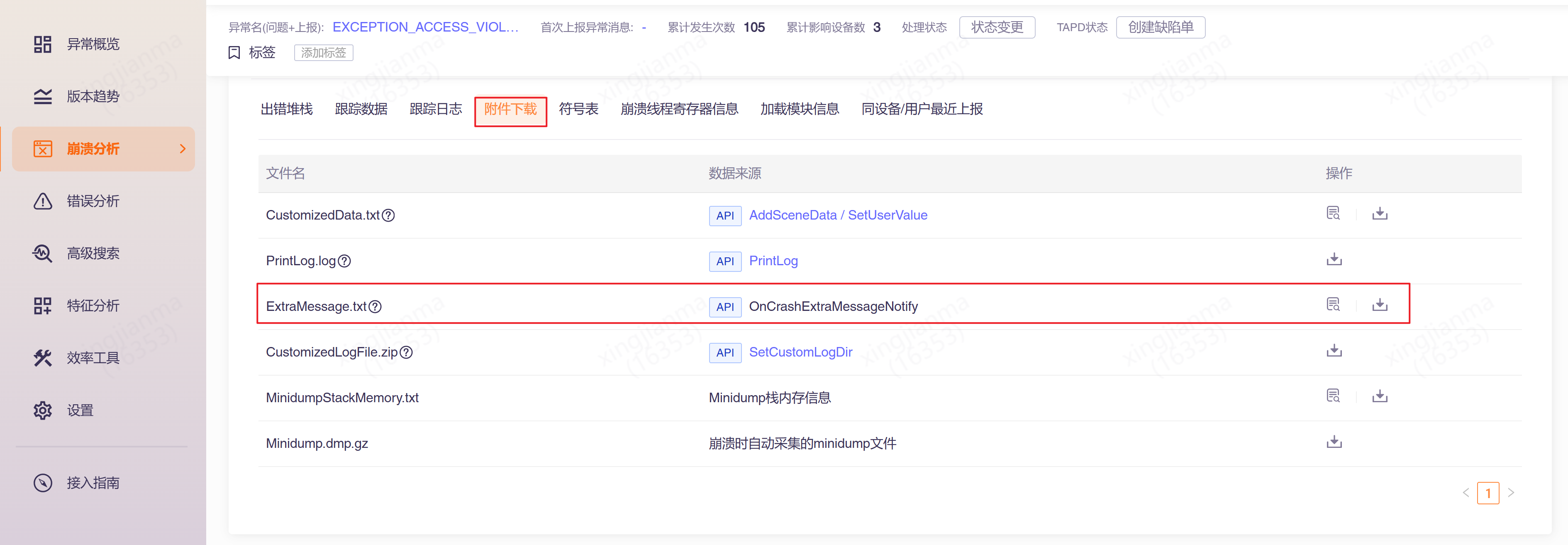 CrashSight支持丰富的自定义数据上传方式,前往使用自定义数据辅助分析问题章节探索更多个性化业务数据的上传方式。