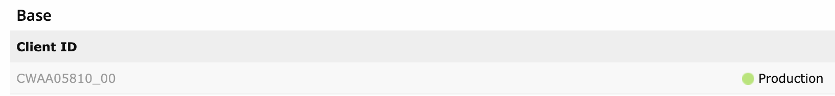 在申请成功之后,"Base -> Client ID"一栏转变为"Production"。