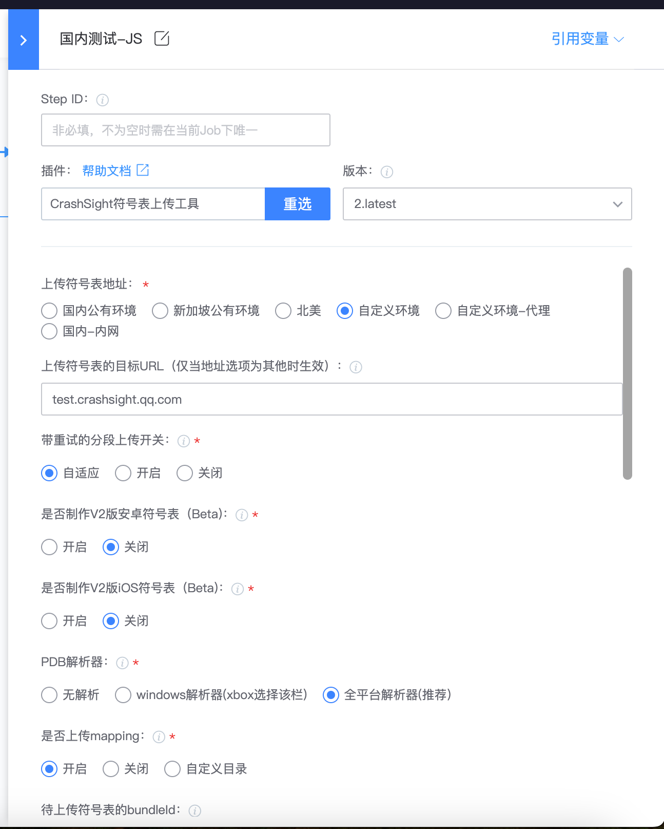 - 初始化 SDK, reportURL 拥有默认值,通常情况下无需填写,如果是 ts 接入,希望使用默认参数,此参数传递 undefined,appId 联系 Crashsight 小助手创建项目获取